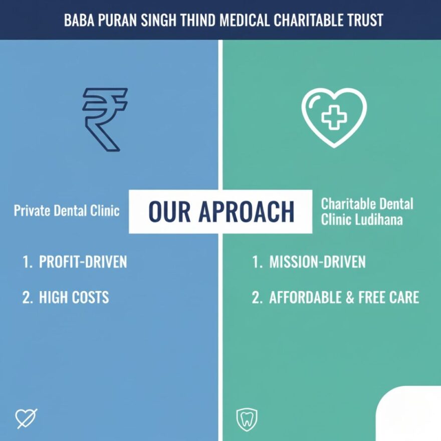 | Feature | Private Dental Clinic | Charitable Dental Clinic Ludhiana (Our Trust) |